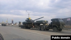 «Источники сообщают, что в 16:00 в направлении на север Крыма двигалась колонна из 10 тралов Российской Федерации, на которых перевозят танки Т-64б из состава 36 бригады береговой обороны (Перевальное). Колонна идет в сопровождении авто ГАИ и ВАИ», – утверждает он.