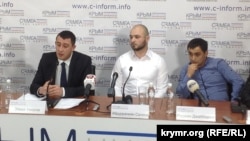 Крымскотатарские активисты Ридван Джаббаров (слева) и Ремзи Чарухов на пресс-конференции
