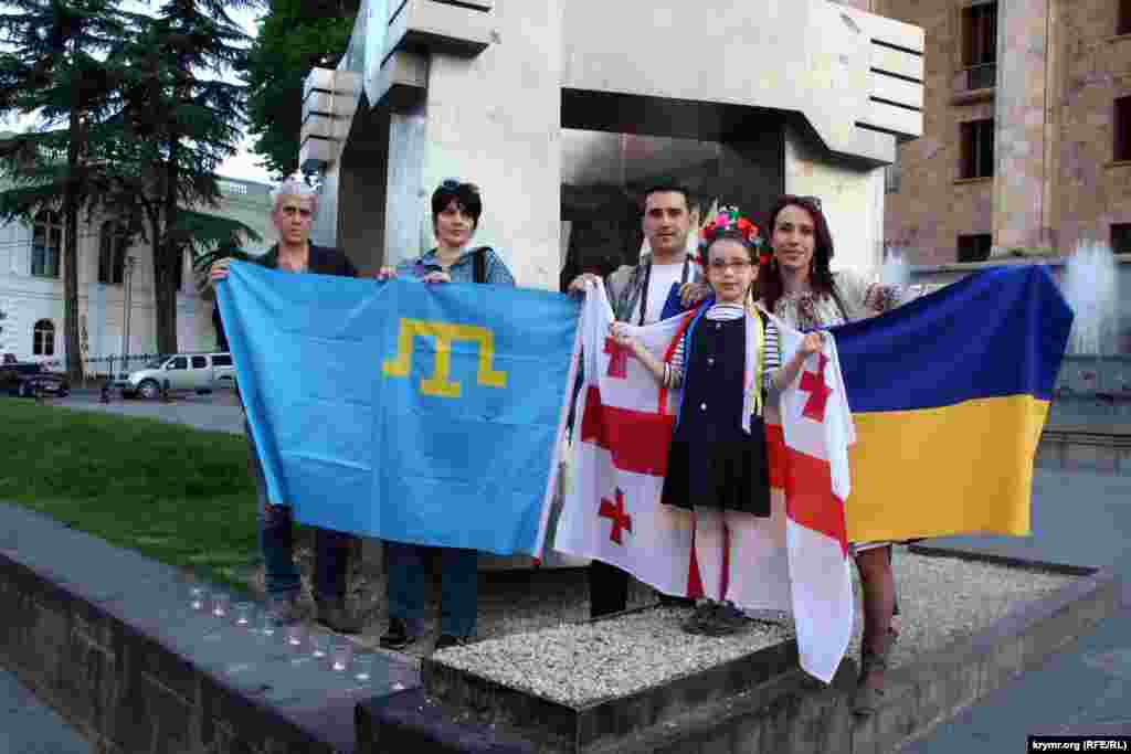 Сегодня в центре Тбилиси у памятного знака памяти жертв событий 1989 году, по инициативе профессора Государственного университета Илии Олега Панфилова состоялась акция в поддержку крымских татар. Жители Тбилиси и украинцы, живущие в Грузии, почтили память жертв депортации крымских татар