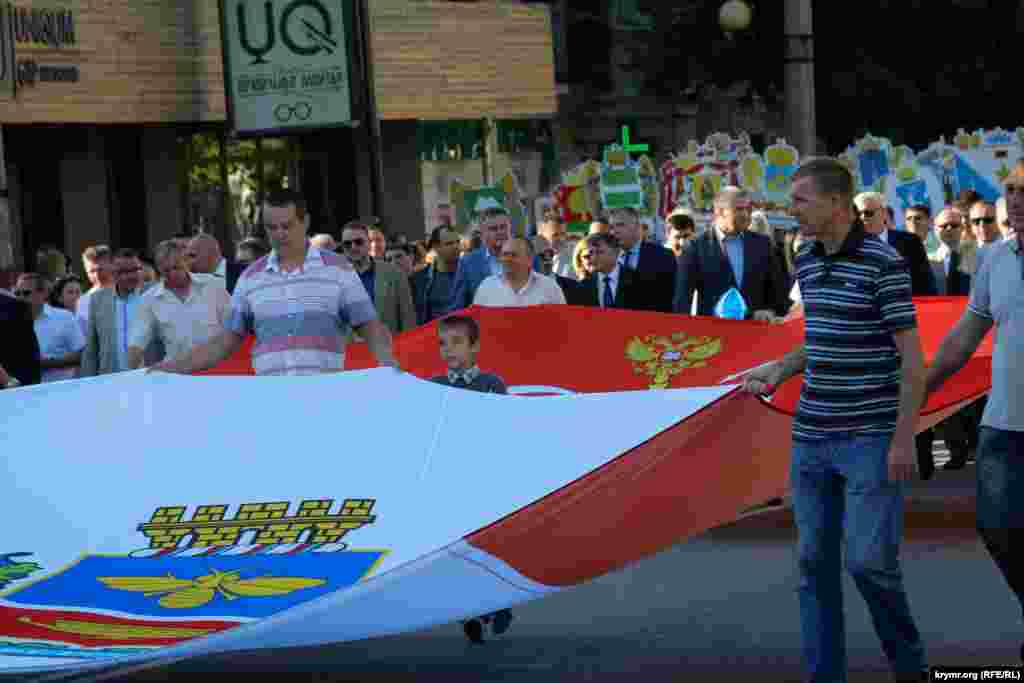 От площади Куйбышева до памятника Ленину состоялось шествие, в котором приняли участие представители политической партии «Единая Россия», работники предприятий города, воспитанники различных творческих объединений и спортивных секций, а также крымские казаки. Затем на площади Ленина прошел концерт.