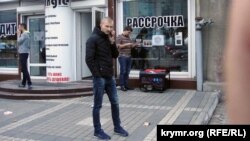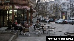 Молодежь (в том числе и крымские татары, судя по хиджабу девушки) чинно беседует.