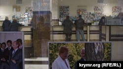 Народ на почтамте что-то отправляет и получает. А в витрине проглядывает «фотовыставка корреспондентов «МК», сопровождавших президента России Владимира Путина по стране и миру. Редкие кадры экспонируются в витрине Центрального отделения ФГУП «Почта Крыма» (Московский комсомолец. Крым). Мда, редкий Путин.