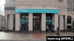 Народ по-прежнему спешит снять нал, пока есть электричество – главный офис РНКБ, отжатый у «Приватбанка».