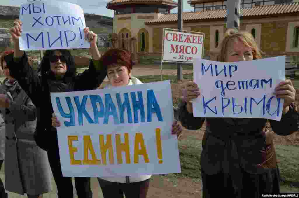 Ко второй годовщине российской аннексии украинского полуострова Крым.Реалии публикуют архивные фото, на которых видно, как в 2014 году проходила оккупация Крыма и как его жители ей сопротивлялись. Несколько сотен женщин с крымскотатарского массива Строгановка на окраине Симферополя в четверг, 6 марта, провели акцию за мир и против пребывания российских войск в Крыму. Они выстроились вдоль Объездной дороги с украинскими и российскими флагами, желтыми и голубыми воздушными шариками. Многие автомобили, которые проезжали по трассе, сигналили в поддержку акции.