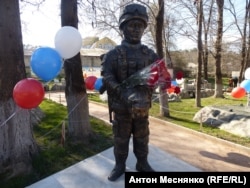 Когда участники скромного торжества выстроились полукольцом у скульптуры, спрятанной под накидкой и украшенной воздушными шариками белого, синего и красного цветов, слово взял городской голова Бахчисарая в 2014 году Константин Рубаненко. Его Жиленко представил как "идейного вдохновителя" памятника: бывший мэр предложил монументально увековечить события "крымской весны" сразу после ее окончания.