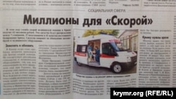В материале «Миллионы для скорой» газета сообщает о том, что в этом году служба скорой медицинской помощи в Крыму получит 62 миллиона рублей. Эти средства будут распределены между 7 станциями, 37 подстанциями и 41 пунктом постоянного базирования бригад. Средства направят на обновление автомобилей и медицинского оборудования.