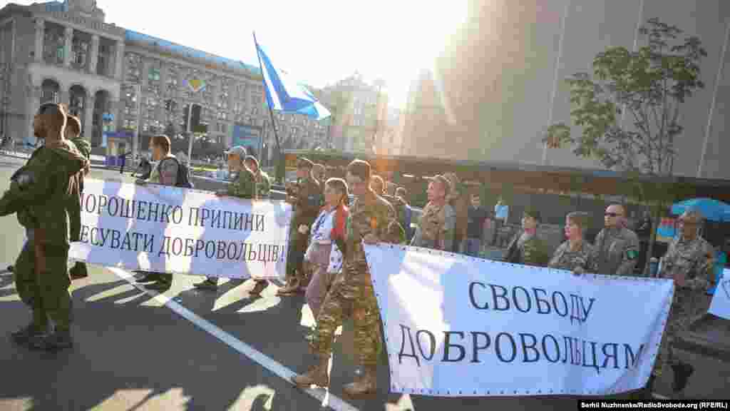 В Киеве участники и сторонники добровольческого движения «ОУН» и одноименного нелегализированного «добровольческого батальона» прошли от Украинского дома к администрации президента, где перед пустым зданием произнесли свои требования. Активисты требовали, в частности, освобождения своих соратников, которые были задержаны на Львовщине по подозрению в подготовке теракта, по мнению активистов, незаконно. Также они требовали отставки председателя Службы безопасности Украины Василия Грицака и главного военного прокурора Украины Анатолия Матиос.