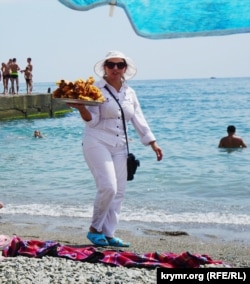 Сама же пляжная картинка тоже оставалась неизменной. Периодически «маневрировали» между обнаженными телами продавцы медовой пахлавы и вареной кукурузы. К примеру, за первую традиционную пляжную вкусность его владелица просила 100 рублей, за второй – вдвое дешевле.