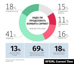 В январе большинство россиян высказались за поддержку боевой операции в Сирии. Несмотря на задекларированный вывод части войск в марте, там продолжаются боевые действия с участием российских военных.