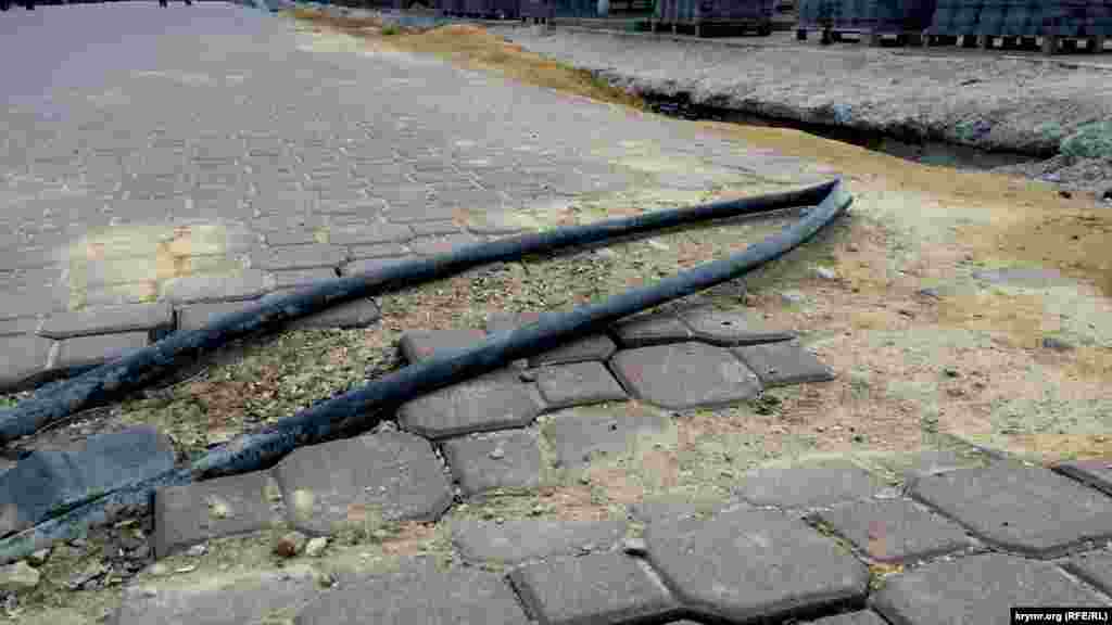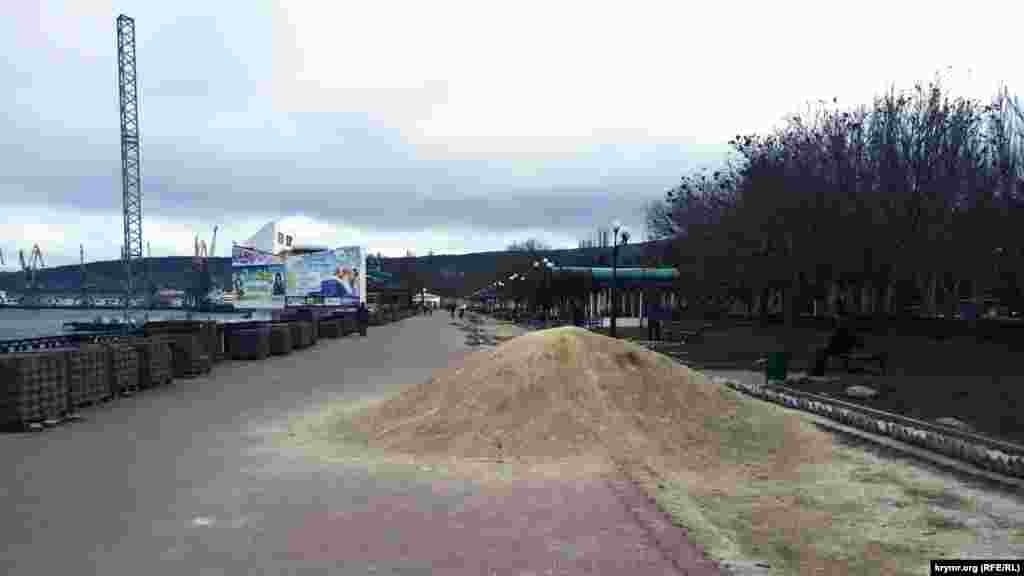 Тем временем большая часть набережной в Феодосии разрыта, а траншеи с трубами стали местом для прогулок детей