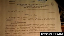 – Проходит «референдум», и уже 17 марта прибыл представитель от Аксенова – Юрий Жеребцов. Он вручил ультиматум командованию Южной военно-морской базы, приказ №7 от 17 марта. В котором четко были обозначены позиции, кто хочет – служит в вооруженных силах АРК, кто не хочет – пусть убирается в континентальную Украину. В том числе сделали громкое заявление о национализации украинского флота. Также четко были определены должностные лица, некто Мерцалов, который курировал все вопросы, связанные с силовыми структурами, это был помощник Аксенова. В приказе также давалось указание заместителю главнокомандующего Военно-морского флота России, что он должен провести инвентаризацию. Конечно, руководство части отказало в этом ультиматуме. Хочу еще добавить, что после «референдума» для психологического давления было воздействие на членов семей украинских военнослужащих. Было заявление – если вы не откроете ворота, не сдадите оружие, мы придем в детские сады и школы. Жены военных вынуждены были не выпускать детей из дома.