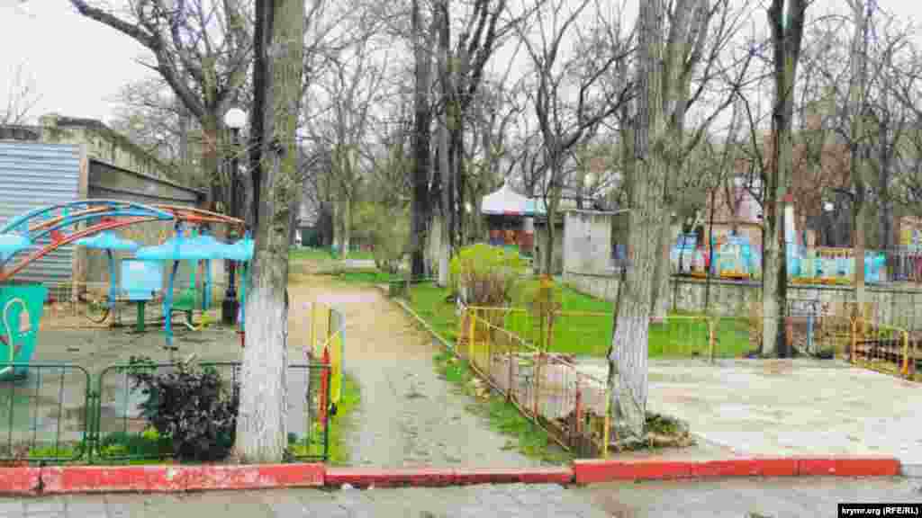На этом «кораблике» катались несколько поколений маленьких керчан. Сейчас аттракцион ржавеет, в то время как плиточное ограждение разрушают местные вандалы