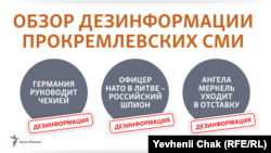 Еженедельно аналитическая рабочая группа публикует «Обзор дезинформации», в котором отражает прокремлевскую дезинформацию и ведет аккаунты, посвященные дезинформации, в Твиттере (@EUvsDisinfo) и Фейсбуке (EUvsDisinformation). Аналитическая рабочая группа по стратегическим коммуникациям East Stratcom создана верховным представителем ЕС Федерикой Могерини в 2015 году в ответ на запрос глав государств всех 28 стран-членов ЕС «осуществлять противодействие кампании дезинформации со стороны России».