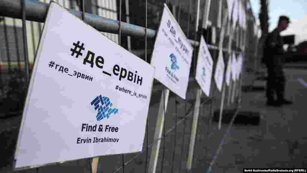В Киеве у посольства России в Украине состоялась акция, приуроченная годовщине похищения крымчанина Эрвина Ибрагимова. На мероприятие пришло около полусотни людей. Организаторы показали документальный фильм «Год без Эрвина», а также провели онлайн-общение с отцом похищенного Умером Ибрагимовым. Это уже 11 акция у посольства России в Киеве, цель которой обратить внимание на проблемы насильственных исчезновений в Крыму. После аннексии в Крыму участились массовые обыски у независимых журналистов, гражданских активистов, активистов крымскотатарского Национального движения, членов Меджлиса крымскотатарского народа, а также крымских мусульман, подозреваемых в связях с запрещенной в России организацией «Хизб ут-Тахрир».