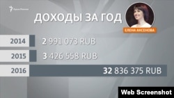 Почти 33 миллиона рублей (около 14 миллионов гривен) в прошлом году заработала Елена Аксенова. Именно такое состояние жены задекларировал российский руководитель аннексированного полуострова.