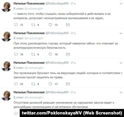 В ответ на свою реплику Ройзман получил от Поклонской целую отповедь в семи (!) твитах: