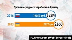 19 тысяч рублей – это почти 284 доллара по курсу прошлого года. Перед российской аннексией средняя зарплата в Крыму составляла 2877 гривен, или 360 долларов по курсу того времени. То есть за три года средние доходы крымчан упали на четверть.