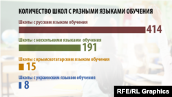 При этом на всем полуострове (с учетом Севастополя) функционировало только 8 школ с украинским языком обучения и 15 – с крымскотатарским. На русском языке обучали в 414 школах Крыма (66% от общего числа крымских школ).