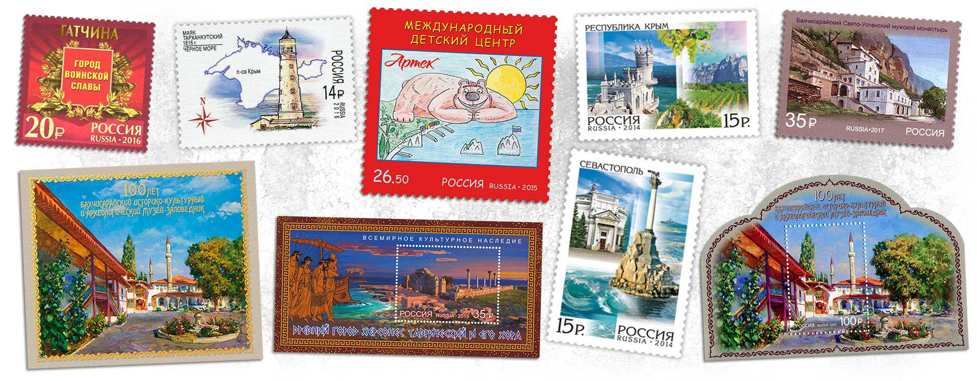 *  марки России о Крыме или ссылки на изображение блока, которые исключены из каталога Всемирного почтового союза.