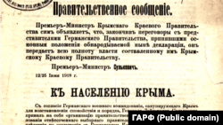 100 лет назад, 25 июня 1918 года, в Крыму начало свою деятельность первое Краевое правительство – переходный орган власти полуострова в бурные годы войн и революций. Интересной особенностью этого правительства была работа в нем на руководящих постах не крымских, а литовских татар во главе с председателем Сулейманом Сулькевичем. Как они оказались на полуострове, и чем закончился этот интернациональный эксперимент – читайте в цикле эксклюзивных материалов Крым.Реалии.