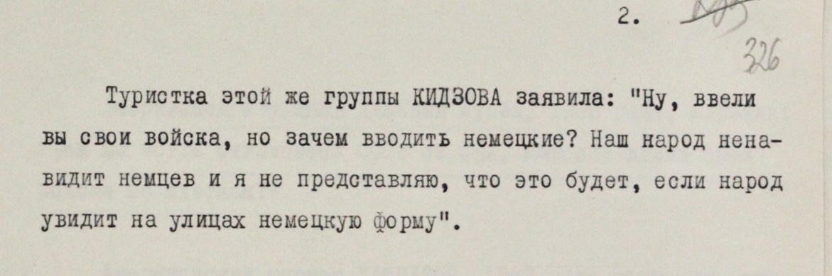 Особое недовольство и ассоциации с прошлым вызывал у жителей Чехословакии факт участия в операции армии ГДР. “Ну, ввели вы свои войска, но зачем вводить немецкие? Наш народ ненавидит немцев, и я не представляю, что это будет, если народ увидит на улицах немецкую форму”, – возмущалась туристка по фамилии Кидзова. Сегодня большинство историков полагает, что восточногерманские военные в дни “Дуная” в большинстве своем оставались дома – считается, что такое решение было принято как раз для того, чтобы избежать параллелей с гитлеровской агрессией. Но туристка, видимо, об этом не знала.