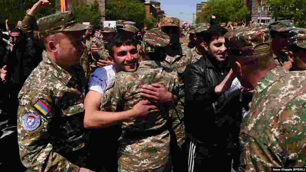Часть военнослужащих присоединились к протесту в Ереване 23 апреля