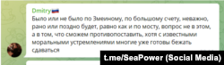 В тематических телеграм-каналах россияне активно обсуждают эту информацию. Подписчики телеграм-канала «Морская мощь государства» комментируют, в том числе, и вот так: