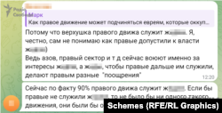 Как установили «Схеми», в Telegram он следил и комментировал сообщения в группах неонацистских взглядов с красноречивыми названиями: «Правый взгляд», «Правый публицист», «Белое движение», «Белая масть», White Powder (белая пудра – ред.).