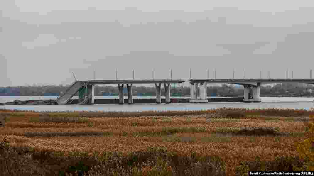 Российские военные уничтожили во время своего отступления Антоновский мост в Херсонской области, фото от 13 ноября 2022 года