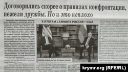 «Крымские известия» комментируют встречу президентов США и России, которая прошла в Женеве. «Очень хочется потепления в отношениях с сильным государством. А у нас, крымчан, еще и свои надежды – на признание российского Крыма и снятие санкций, например. Поэтому, сидя у экрана, мы, медийщики, вспоминали аналогичный саммит в 1985 году Генсекретаря ЦК КПСС Михаила Горбачева и президента США Рональда Рейгана, то, как он поставил точку в «холодной войне». Обращали внимание на приветственные жесты, костюмы, обувь, цвет галстуков. Когда из уст Байдена услышали обрывок фразы «две великие державы», немедленно возликовали и сделали предположение, что США откажутся от старой доктрины о России как глубокой политической провинции», – пишет автор материала. Газета перечисляет договоренности, которые были достигнуты по итогам встречи, а также приводит по этому поводу мнение подконтрольного России спикера парламента Крыма Владимир Константинова: «Наш президент в очередной раз доказал, что он – государственный деятель мирового масштаба, способный мыслить глобально и принимать ответственные решения».
