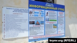 Однако на другом информационном стенде, расположенном неподалеку, значится иной график работы – с 9:00 до 19:00. На этих же информационных стендах указаны телефоны спасателей, «скорой помощи» и полиции, как это значится в рекомендациях Минкурортов и туризма Крыма.