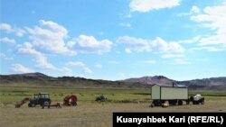 У подножия горы Дегелен крестьянские хозяйства заготавливают корма для скота. По словам фермеров, как только люди по неосторожности пересекают линию охраняемой зоны во время сенокоса, сразу же приезжают военные и делают замечание.
