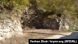 Дорога через балку шла из средневекового порта Авлита, принадлежавшего княжеству Феодоро, к крепости Каламита в Инкермане. Остатки подпорных стен, наверно, помоложе. Вот это место дачники сейчас используют для автостоянки.