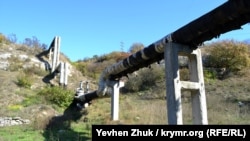 Иду по балке на юг. По трубам из Севастопольской ТЭЦ, которая находится в Инкермане, подается теплоноситель в микрорайоны улицы Горпищенко и проспекта Победы. Эта теплоэлектроцентраль отапливает большую часть Нахимовского района Севастополя.