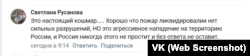 «А ещё бы правду писали, вообще класс был бы. А то прочитаешь: «все в порядке»… А позвонишь – все в мыле, как так?» – пишет Ирина Берест в группе «Инцидент Крым|Симферополь|Севастополь».