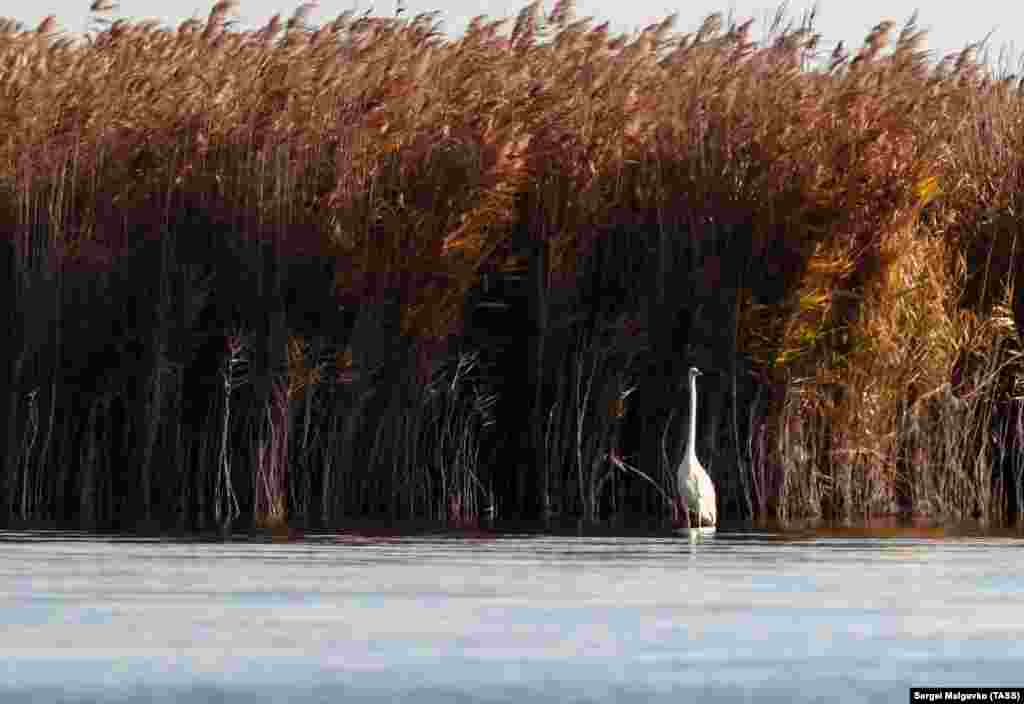 На озере Сасык-Сиваш, что под Евпаторией, сейчас можно увидеть стаи совершенно разных птиц – диких уток, цапель и белых лебедей.