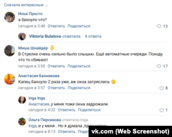 «В Стрелке очень сильно было слышно. Ещё автоматные очереди. Походу что-то сбивают», – уточняет Миша Шнайдер.