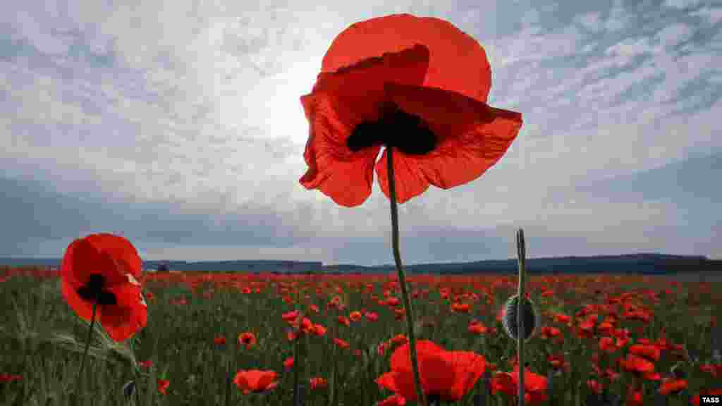 Вдоль дороги на пещерный город Эски-Кермен Бахчисарайского района расцвели маковые поля.