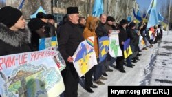 На митинг пришло более 150 человек. Активисты пришли плакатами «Крым – это Украина» и «26 февраля – 1461 день сопротивления Крыма российской оккупации».