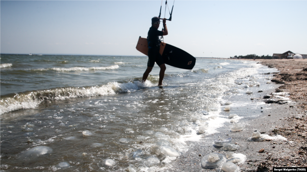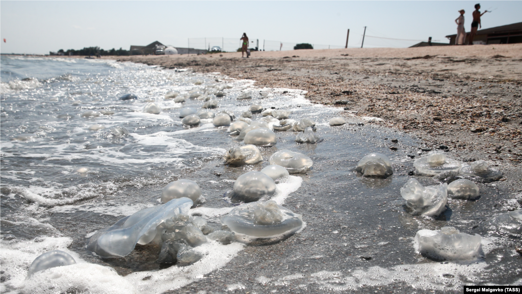 Жалят и оставляют следы: тысячи медуз у побережья Азовского моря в Крыму (фотогалерея)