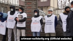 После решения Южного окружного военного суда в российском Ростове-на-Дону, который приговорил к длительным срокам троих крымских мусульман – фигурантов белогорского «дела Хизб ут-Тахрир», десятки крымских татар выстроились возле здания суда в футболках с призывами прекратить репрессии. Об этом Крым.Реалии сообщили в «Крымской солидарности».