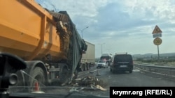 Утром 12 июня в Крыму на трассе «Таврида» произошло ДТП с участием двух грузовиков, из-за чего образовалась автомобильная пробка, сообщает корреспондент Крым.Реалии.