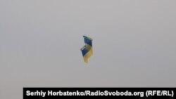 Волонтеры из Краматорска, Киева, Херсонской и Запорожской областей 4 декабря запустили в сторону Крыма флаг Украины размером 20 на 6 метров, сообщает корреспондент Крым.Реалии.