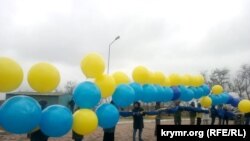 Флаг запустили в Крым на воздушных шарах с Каланчака.