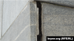 В Керчи появились трещины на постаменте памятника Владимиру Ленину, установленном на центральной площади. Как сообщает корреспондент Крым.Реалии, из-за деформации постамента начали расходиться облицовочные плиты.