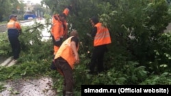 В Симферополе в субботу, 29 мая, ливень и шквальный ветер повалили деревья по ряду улиц. Об этом сообщили в пресс-службе местной российской администрации со ссылкой на директора коммунального предприятия «Город» Антона Гумена.