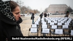 На Михайловской площади в Киеве 15 ноября прошла акция «Пустые стулья» в поддержку украинских политических заключенных, которых удерживают в России и аннексированном Крыму. Как сообщает корреспондент Крым.Реалии, организаторами выступил Украинские ПЕН-центр и Центр гражданских свобод.