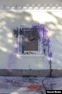 В Симферополе в ночь с 17 на 18 мая неизвестные залили синей краской мемориальную доску Иосифу Сталину, которая размещается на стене здания офиса Крымского отделения КПРФ по ул. Долгоруковской.