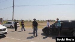 Правозащитники отмечают, что автомобилистов проверяют сотрудники российских ГИБДД и ОМОН.