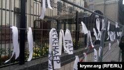 У посольства России в Киеве 24 марта проходит акция «Где Эрвин?» в поддержку без вести пропавших крымчан. Крым.Реалии ведут прямую трансляцию с мероприятия.